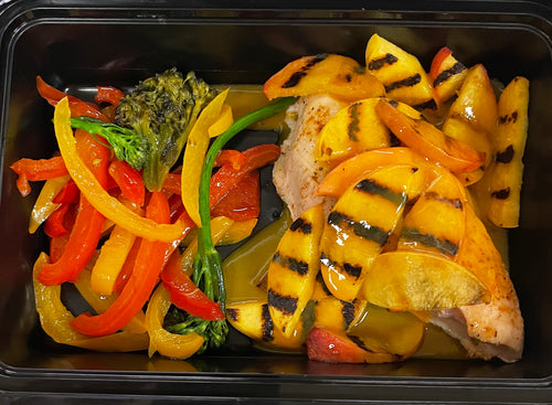 Low Cal Almond Chicken With Grilled Peaches